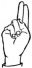 На ћирилици написано НОВАК ТРИКОШАНИН састоји се из 15 слова [?]. Исписано ћириличном једноручном азбуком за глувонеме: